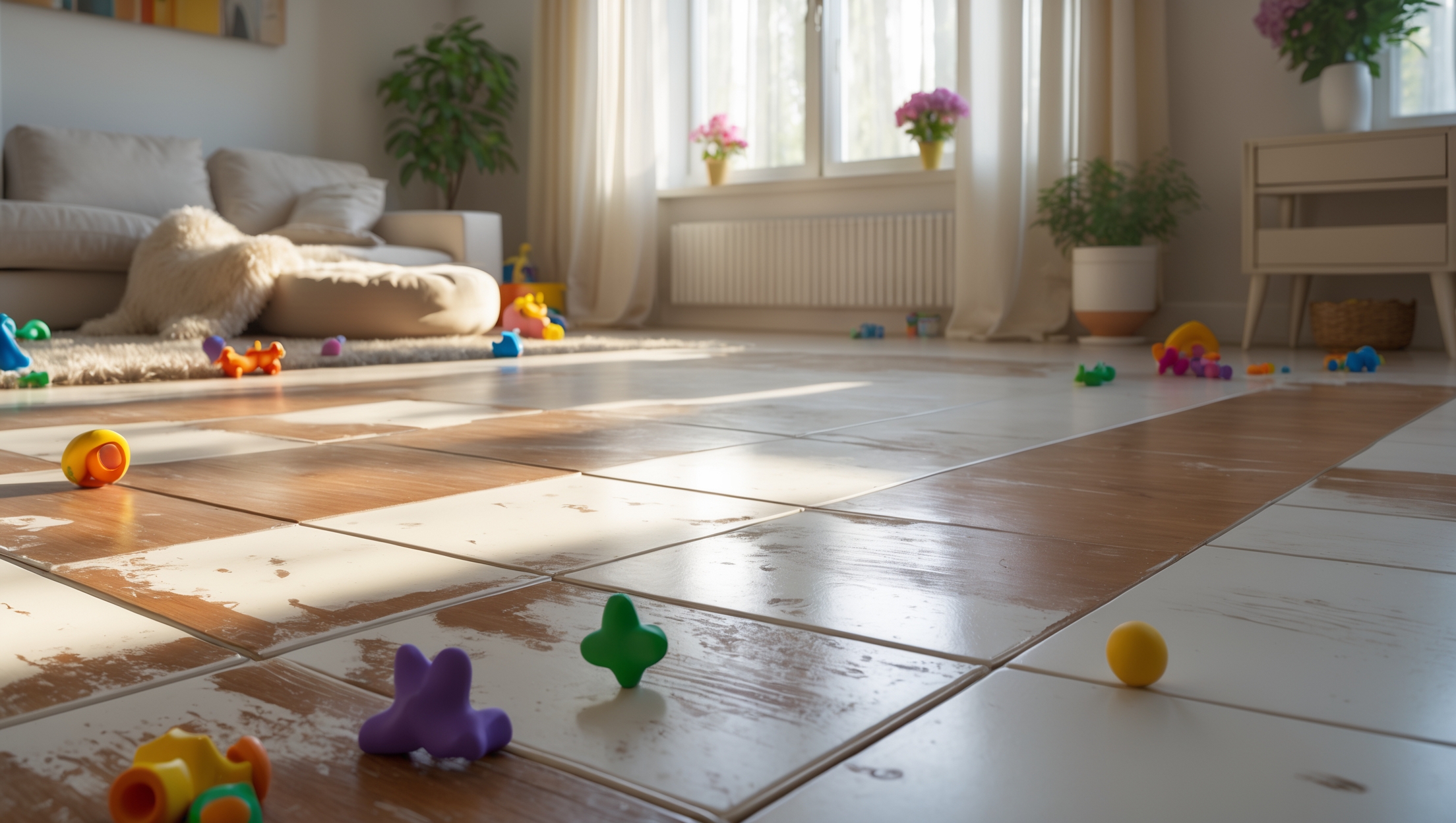 Durability in flooring refers to its ability to resist wear, scratches, dents, stains, and moisture over time. For a busy household, a durable floor must absorb impacts, withstand frequent cleaning, and maintain its structure and appearance despite daily use by children, pets, and guests.