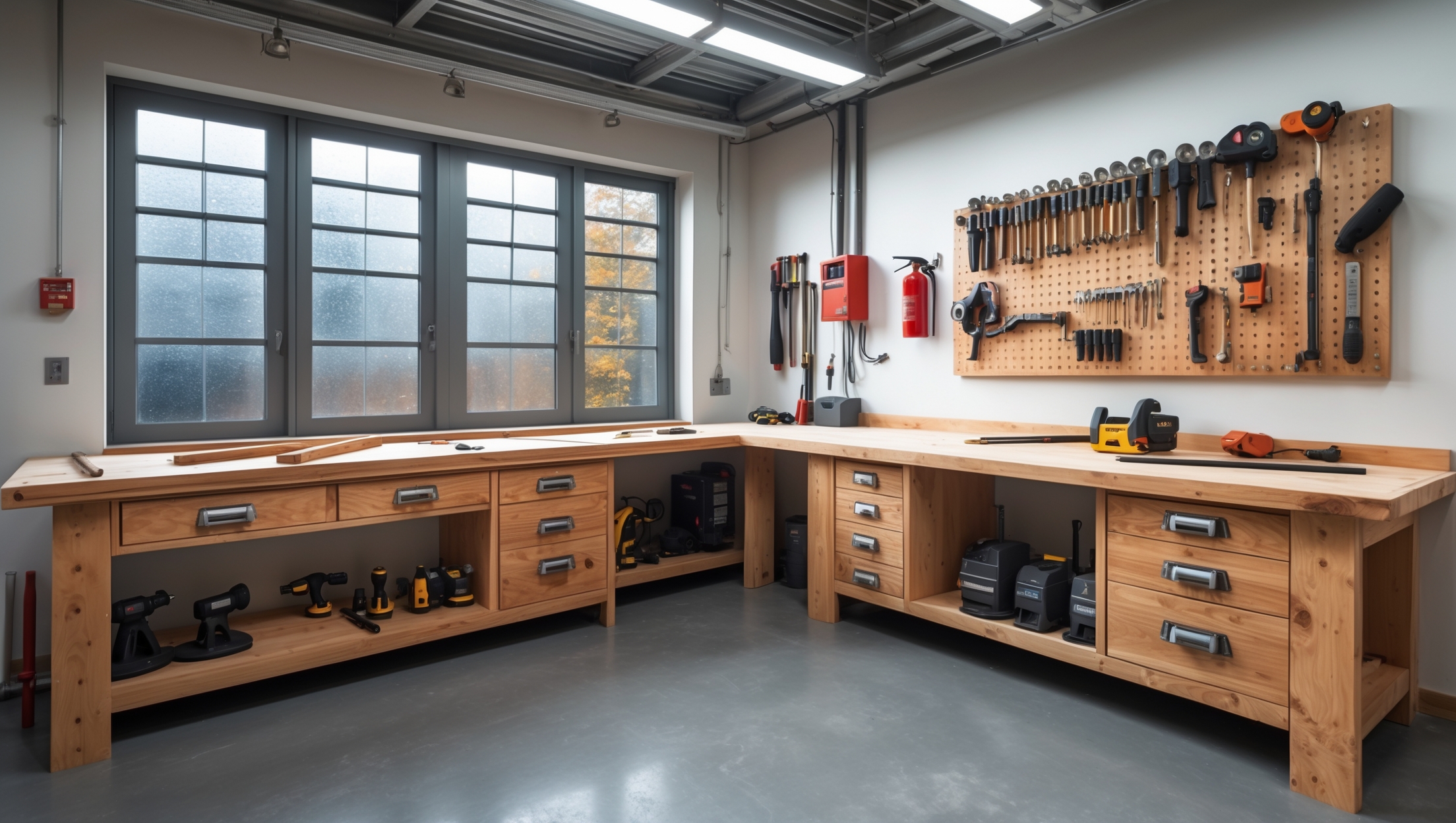 Map out where you’ll need outlets for stationary tools and charging stations. Install bright, shadow-free LED lighting overhead and task lighting above your workbench. Avoid running extension cords across the floor.
